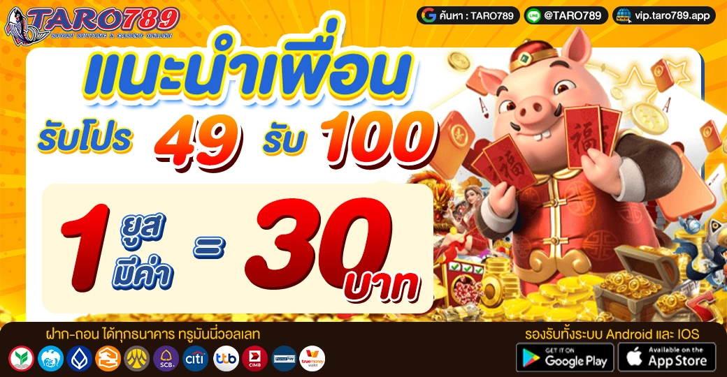 ชวนเพื่อน รับโปรโมชั่น ฝาก 49 รับ 100 ได้ง่ายๆ กับลิ้งค์รับทรัพย์ 1ยูส รับฟรี ทันที 30 บาท